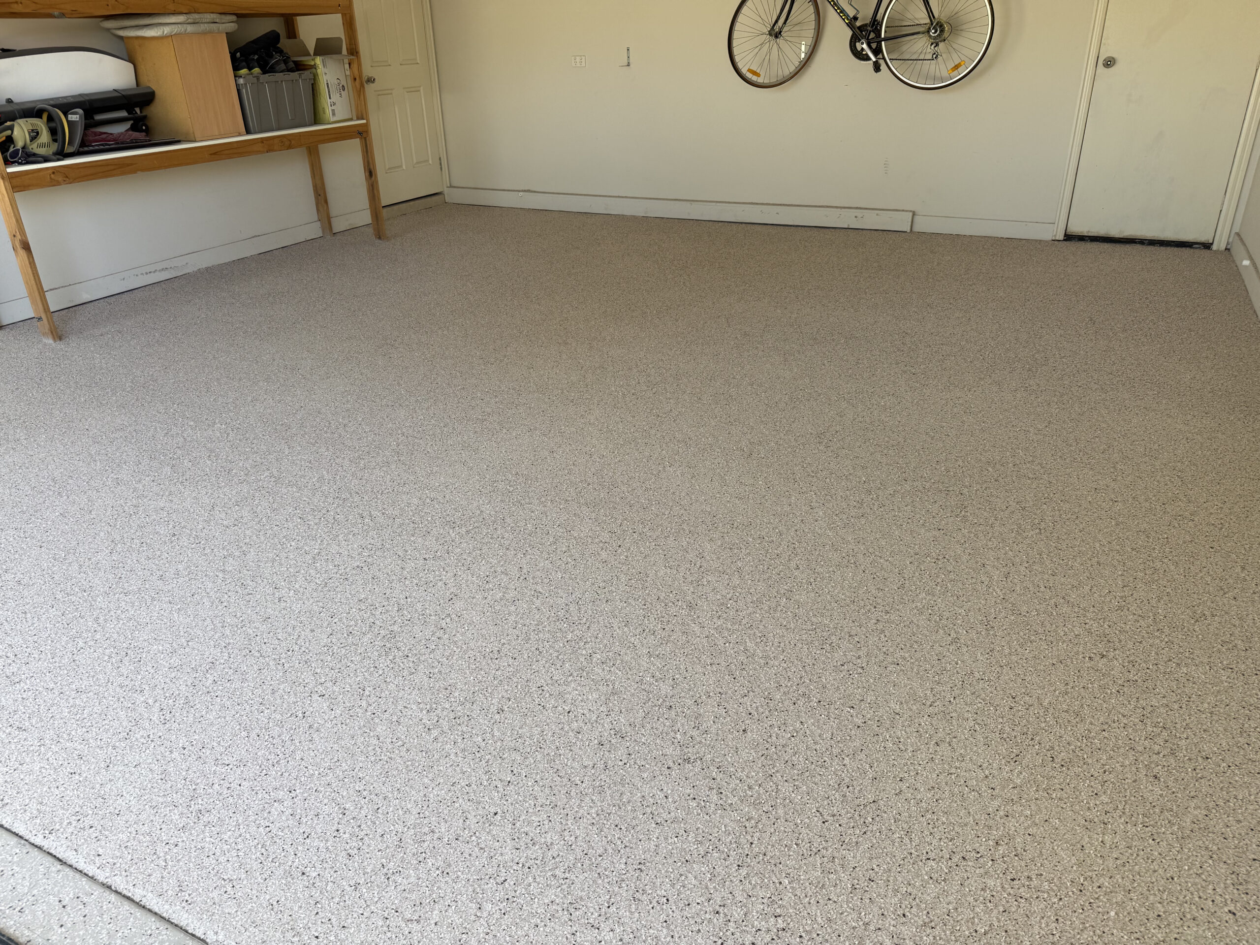 After receiving several quotes, Peter chose our team to grind back the existing concrete and install an Epoxy Essential Finish featuring a Marino base with Ultra Flake Biscuit. The result is a clean, modern garage floor that’s durable, easy to maintain, and completely refreshed the space.